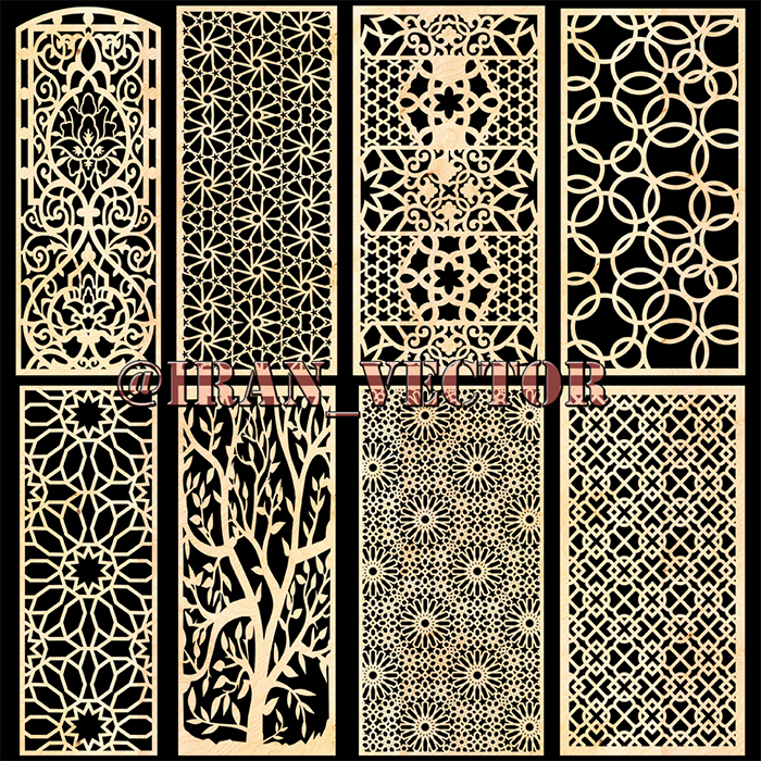 دانلود دانلود الگوهای برش پنل مشبک، شامل هشت طرح - کد 2139 - طرح های وکتور