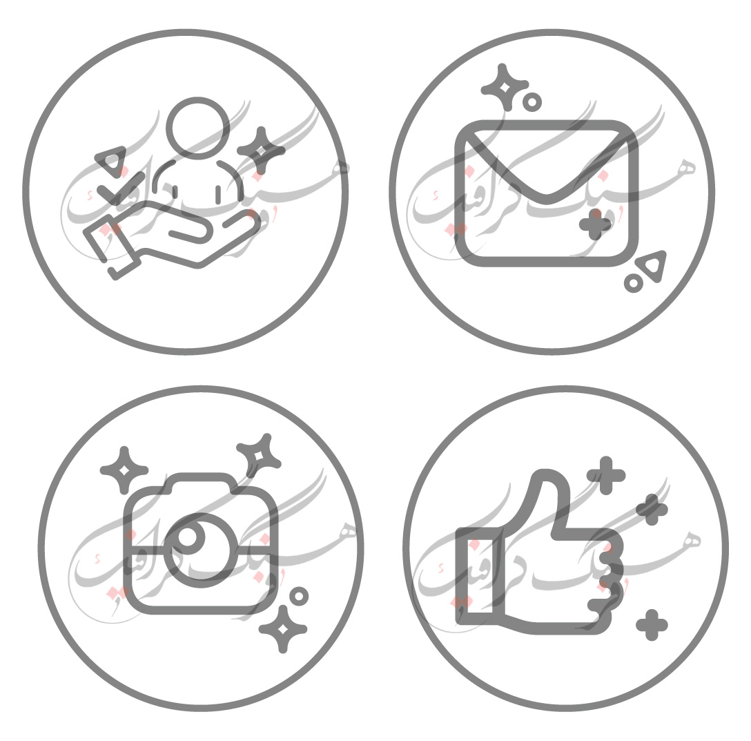 دانلود 4 آیکن خطی کسب و کاری با موضوع مشتری مداری ارتباط با مشتری لایک و دوربین