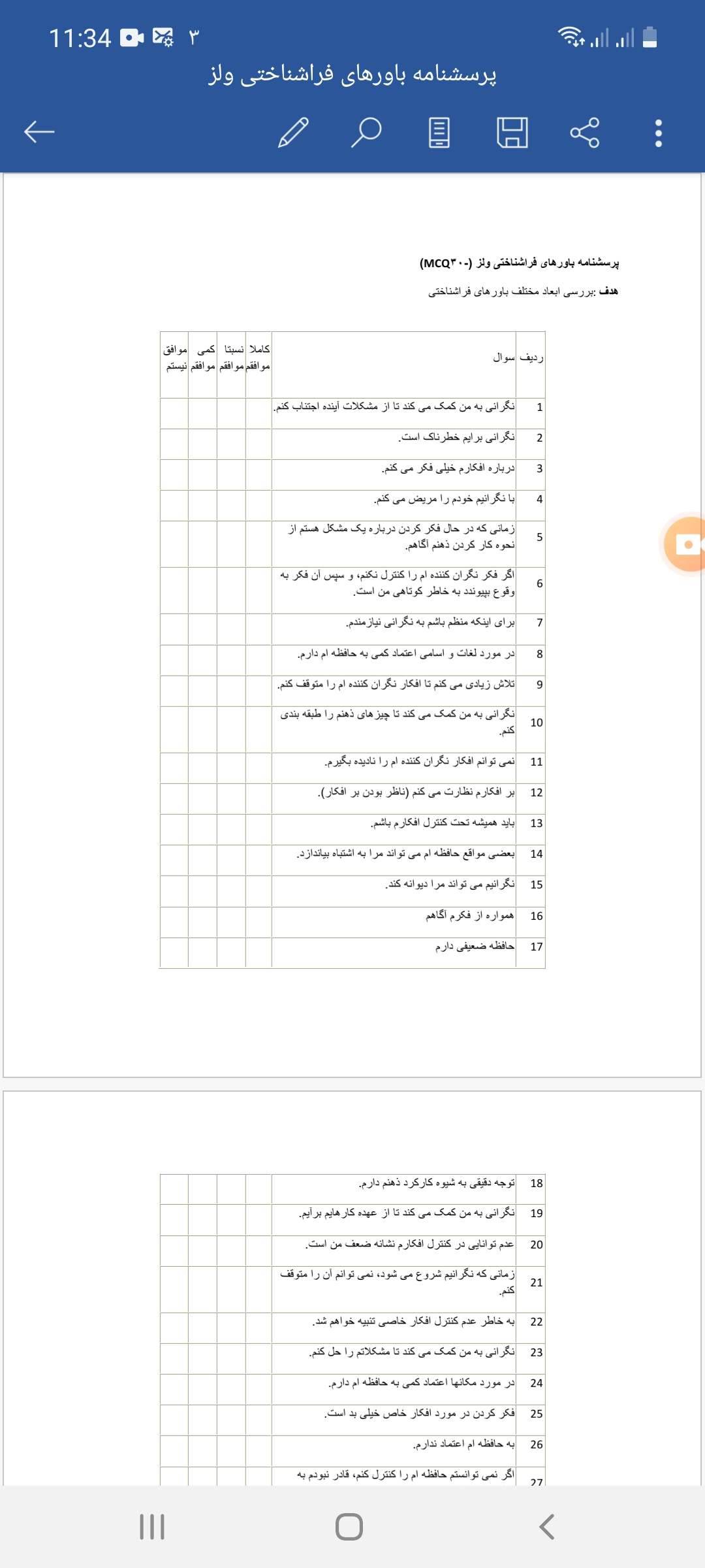 پرسشنامه باورهای فراشناختی ولز (-۳۰MCQ)