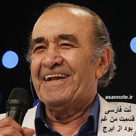 نت فارسی قسمت من غم بود از ایرج بصورت دو ر می فا کاملا فارسی با متن شعر و آکورد و تنظیمات ساز دقیق و کامل از محصولات آسان نُت محصولاتی از آسان نُت نُت فارسی آهنگهای دیگرِ ایرج در سایت اصلی آسان نُت asannote.ir